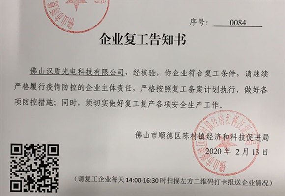 All of our employee start working online at Feb. 1st. all the phones and emails are active to response to clients, every order we received, we contact with our supplier to check the detailed dated we could get the material and try to short the delay. We also required our employee to report daily healthy online to the company and government, and we also do the internally check about people come from or visit Wuhan. We update the company report to local government at Feb. 15, all of our employees are healthy and ready to back to work. On Feb.16th.2020, our management invited Foshan Chencun Town governors to visit our factory and inspect our protective measures and environment. After the strict check with our documents and daily health report, they are satisfied with what we had done. They approved our application to resume to work. Haydn become one of the 1st group companies to return to work. We restarted the production capacity at Feb.17th. At the same time, we positively support our supply chain to resume to work as well, everything is getting back to the right track.